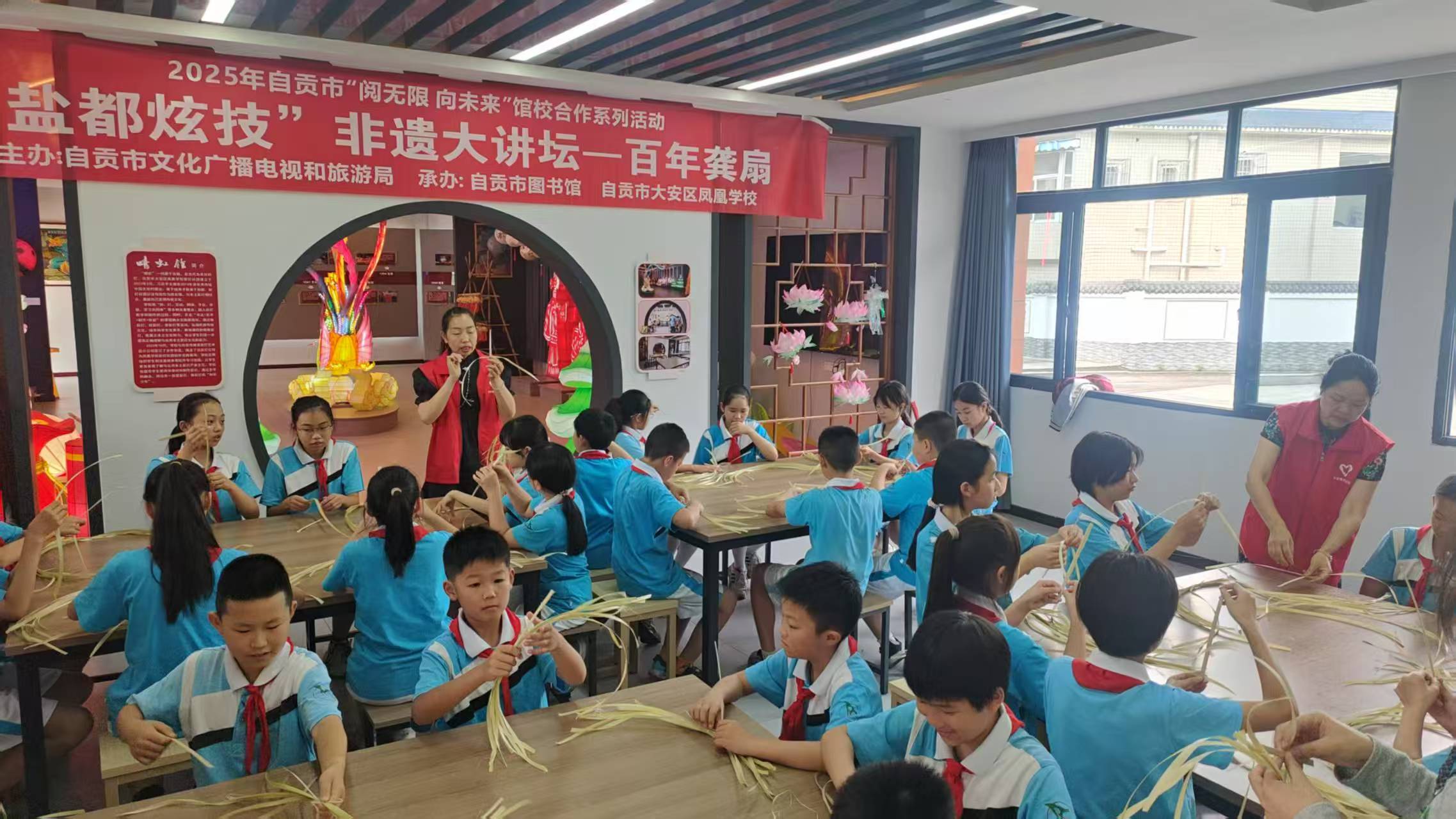 不仅如此,为了助力传统文化的传承与创新,龚倩还和徒弟们走进校园,以实物展示、故事讲述、手工实践相结合的方式,介绍龚扇历史、工艺特点及文化价值,让学生们近距离感受龚扇的独特魅力。“学生非常喜欢龚扇技艺,编织竹具成了很多学生的业余爱好,他们课余时间还经常去非遗工坊实践。”看到学生对传统手艺的热爱,龚倩高兴地说。