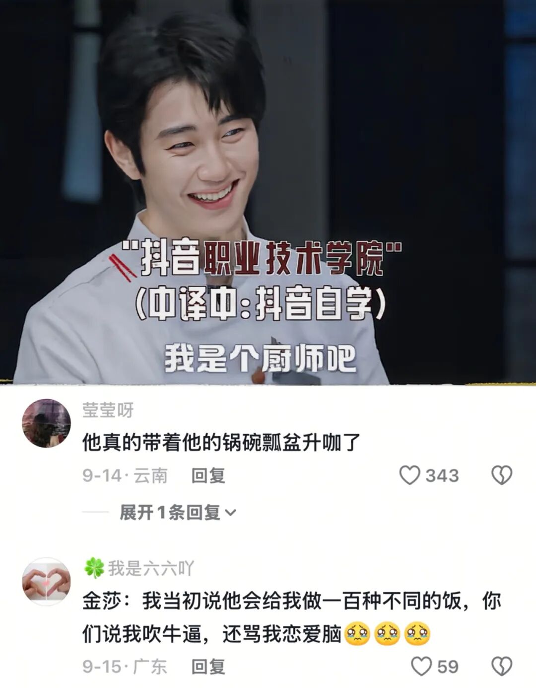 要知道2023年在《爱的修学旅行》节目里,他和金莎为其他嘉宾送上了家乡特色菜。当何猷君夸赞他“还原了葡国鸡的味道”时,观众还质疑何猷君做戏,演高情商。