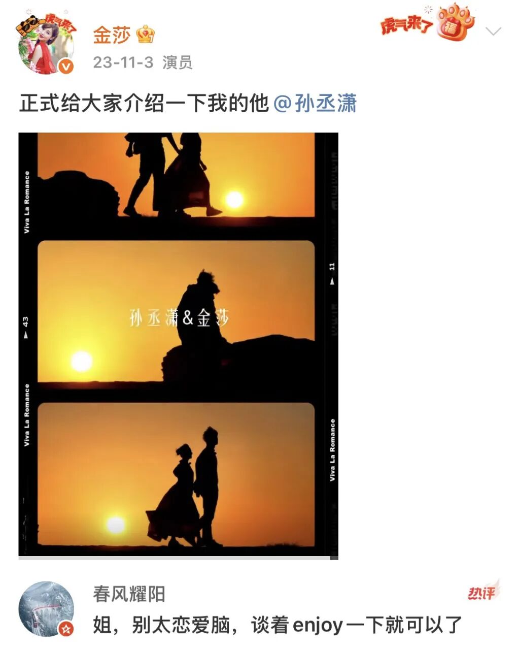 2023年她官宣了已交往一年的孙丞潇,粉丝都劝金莎别恋爱脑。