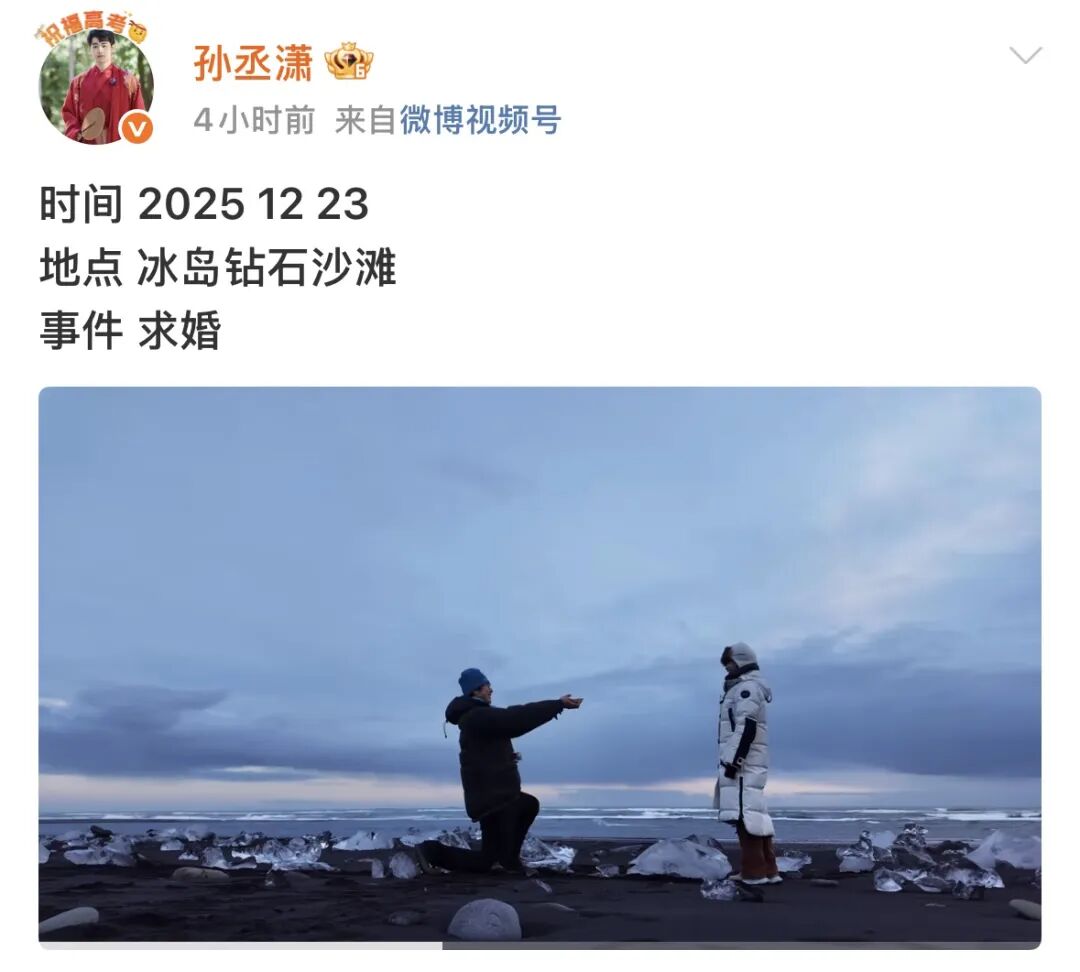 孙丞潇在冰岛向金莎求婚,俩人用这种方式向全网广而告之喜讯。